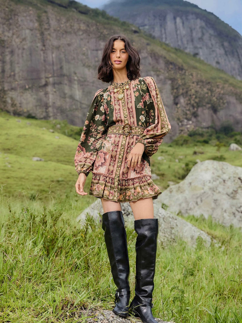 Green Flowering Garden Tree Mini Dress