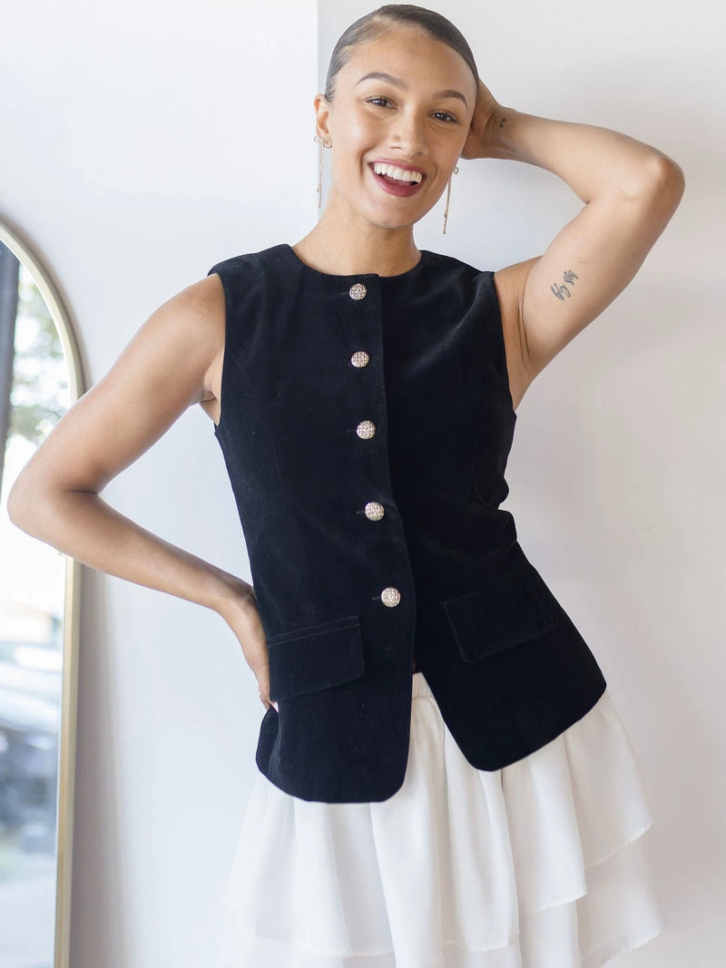 Velvet Sleeveless Mini Dress with Trim Skirt