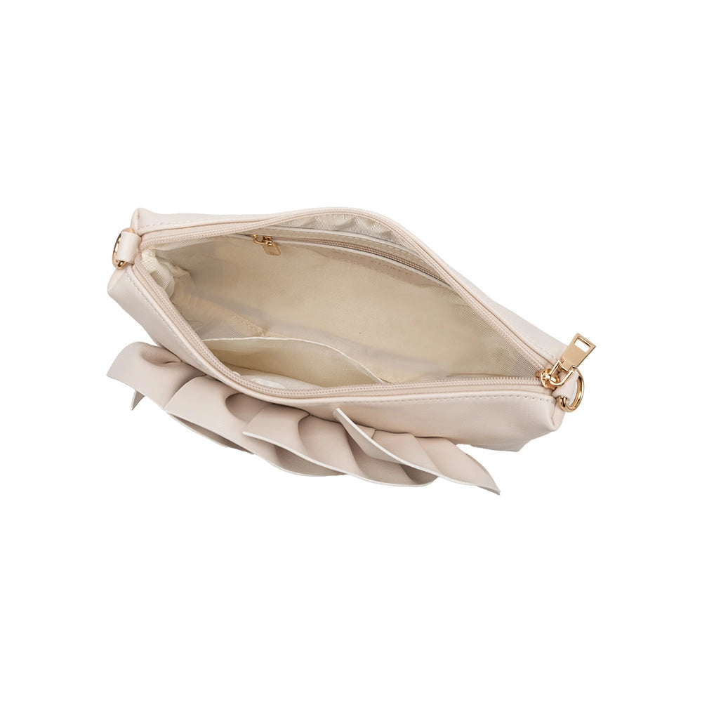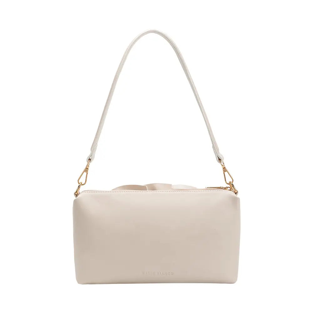 The Florence bag is the perfect combination of functionality and fashion. With its versatile design, this small bag easily converts from a shoulder bag to a crossbody to a clutch, providing effortless convenience. Adorned with a sophisticated flower embellishment.