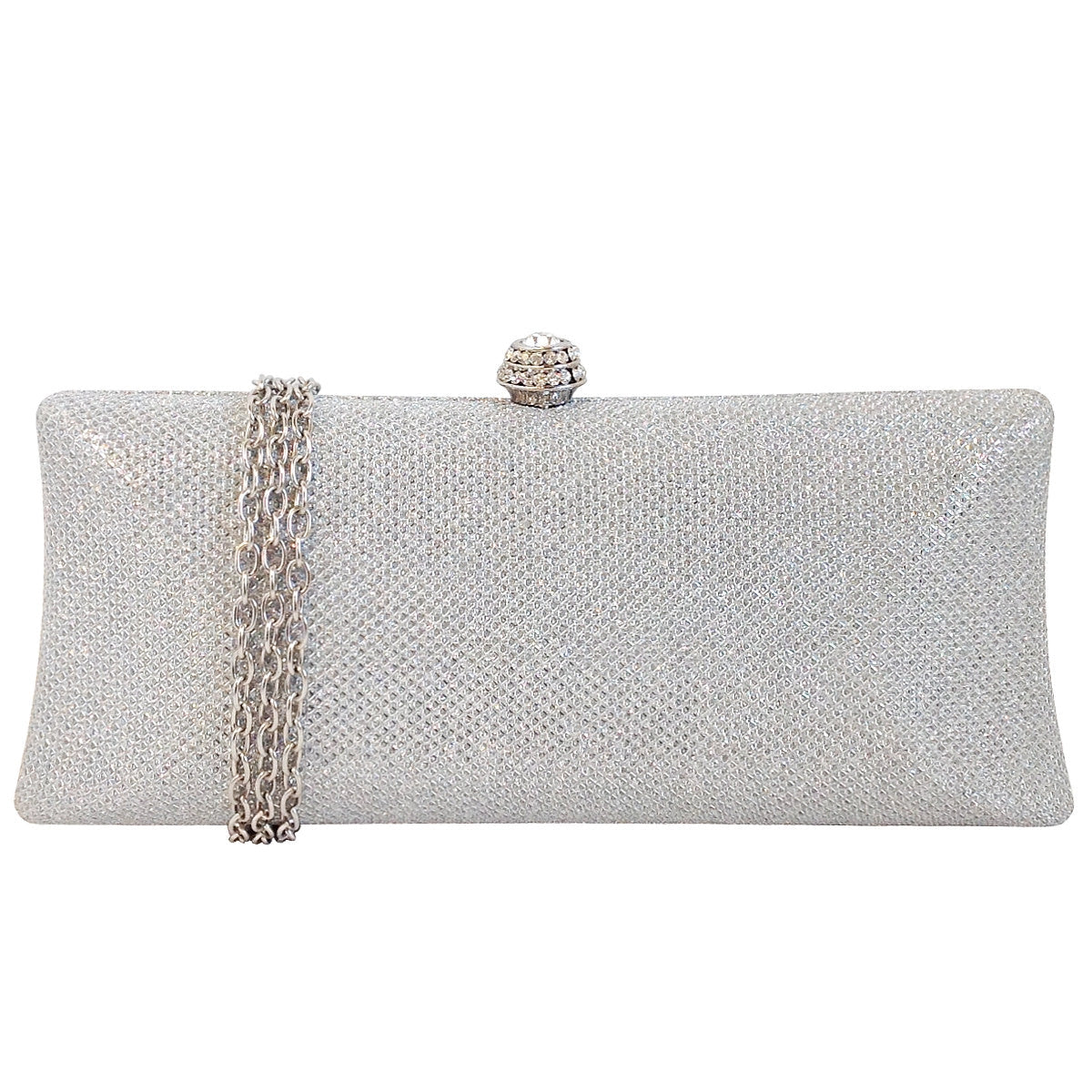 A hard shell evening bag with an of-the-moment long shape and gorgeous gem clasp.