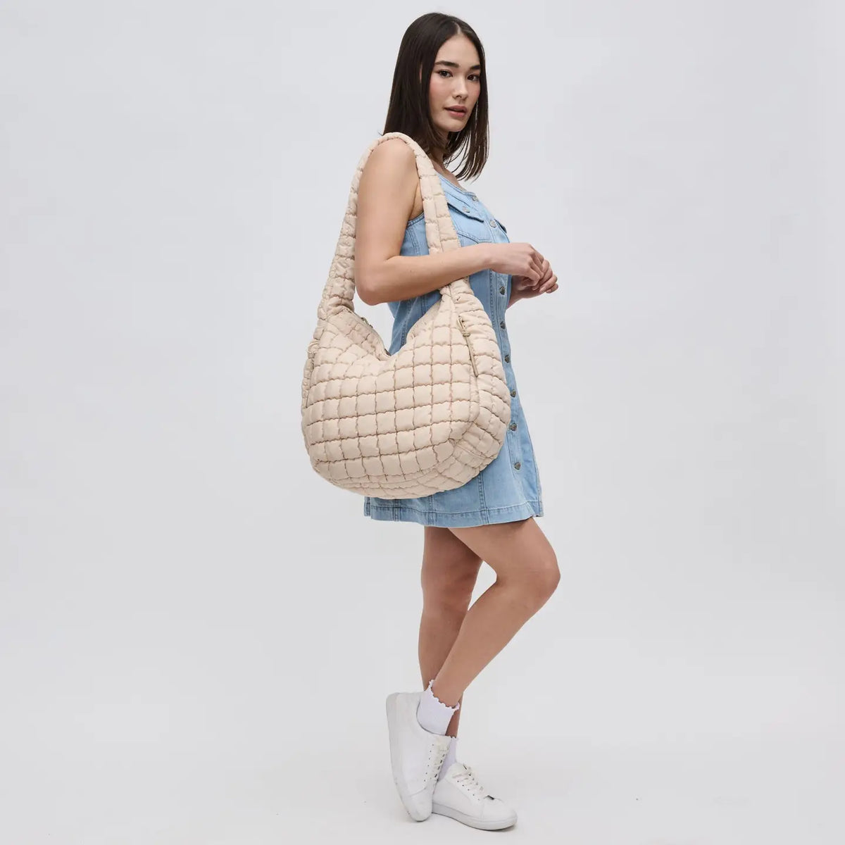 Revive your style with the Revive Puffy Quilted Nylon Hobo. Crafted with utmost attention to detail, this chic and versatile bag combines functionality with a trendy design. Elevate your look and carry all your essentials in style with this must-have bag.