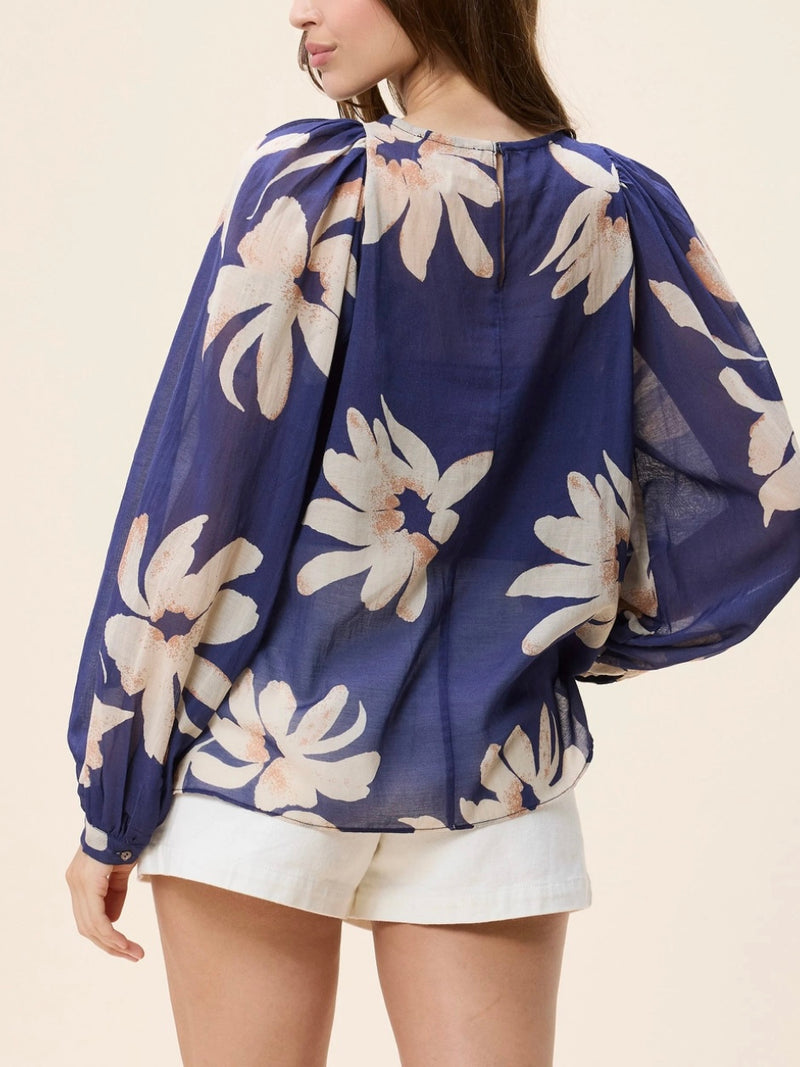 Delicate Ainika Sand Smocking Long Sleeve Blouse