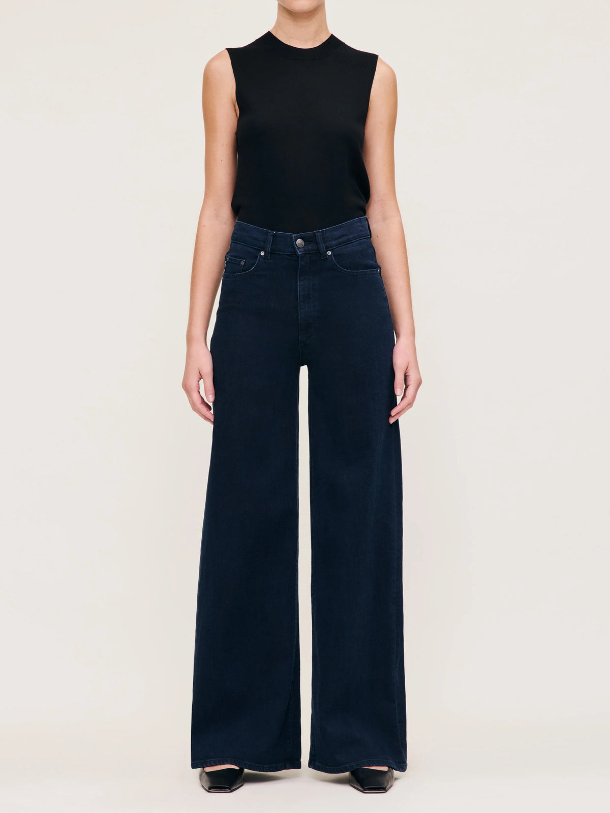 Flatiron is a deep indigo wash. It features silver hardware, tonal stitching, a clean hem and a black back patch.
