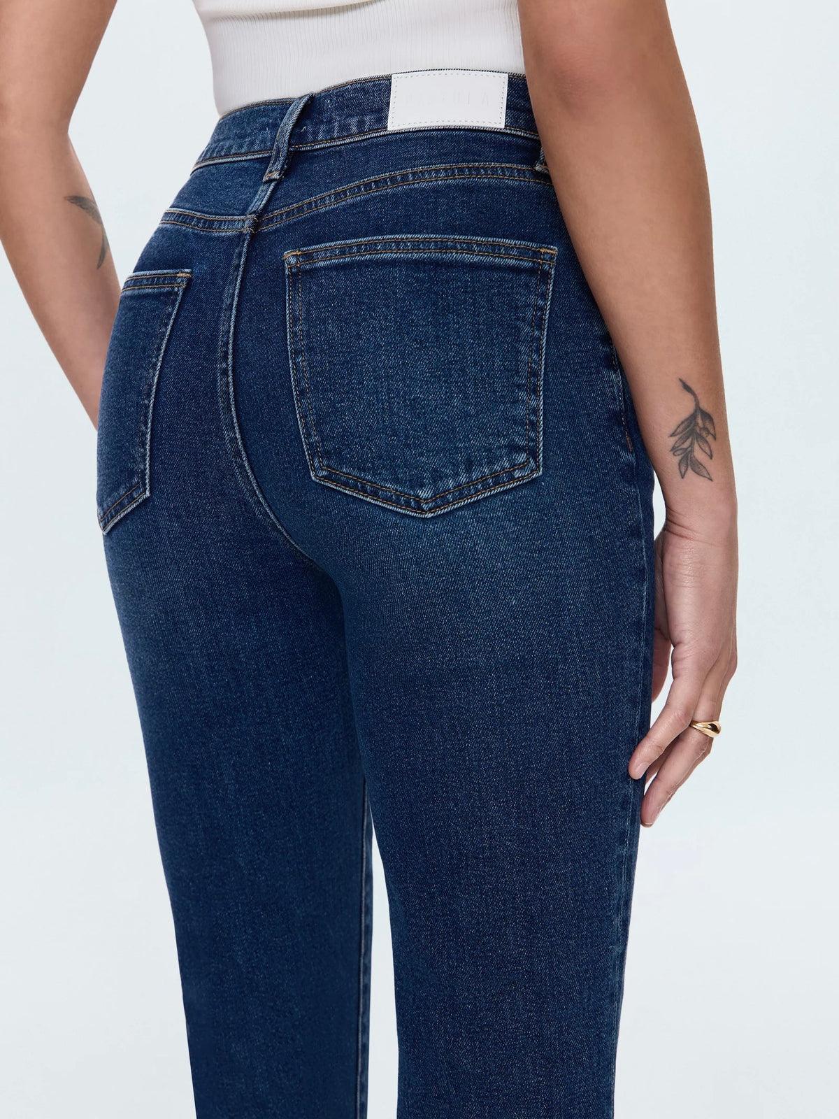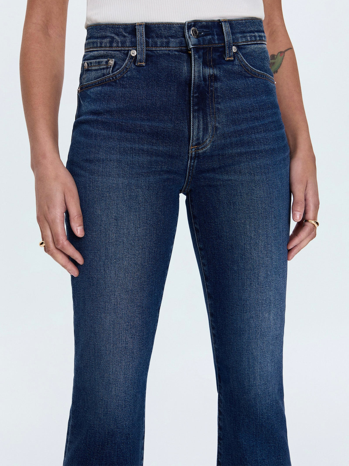 The bootcut you'll reach for again and again. Lennon sits at a high rise with a slim-to-the-body fit that hugs from hips to knee before flaring at the calf for perfect proportional effect. The cropped ankle bootcut creates a flattering silhouette that works with any shoe. Crafted from high stretch fabric that moves as you do while maintaining its expert shape. Broadway brings sophisticated depth with its dark wash, enhanced by subtle fading and whiskering that feels intentional, never overdone.