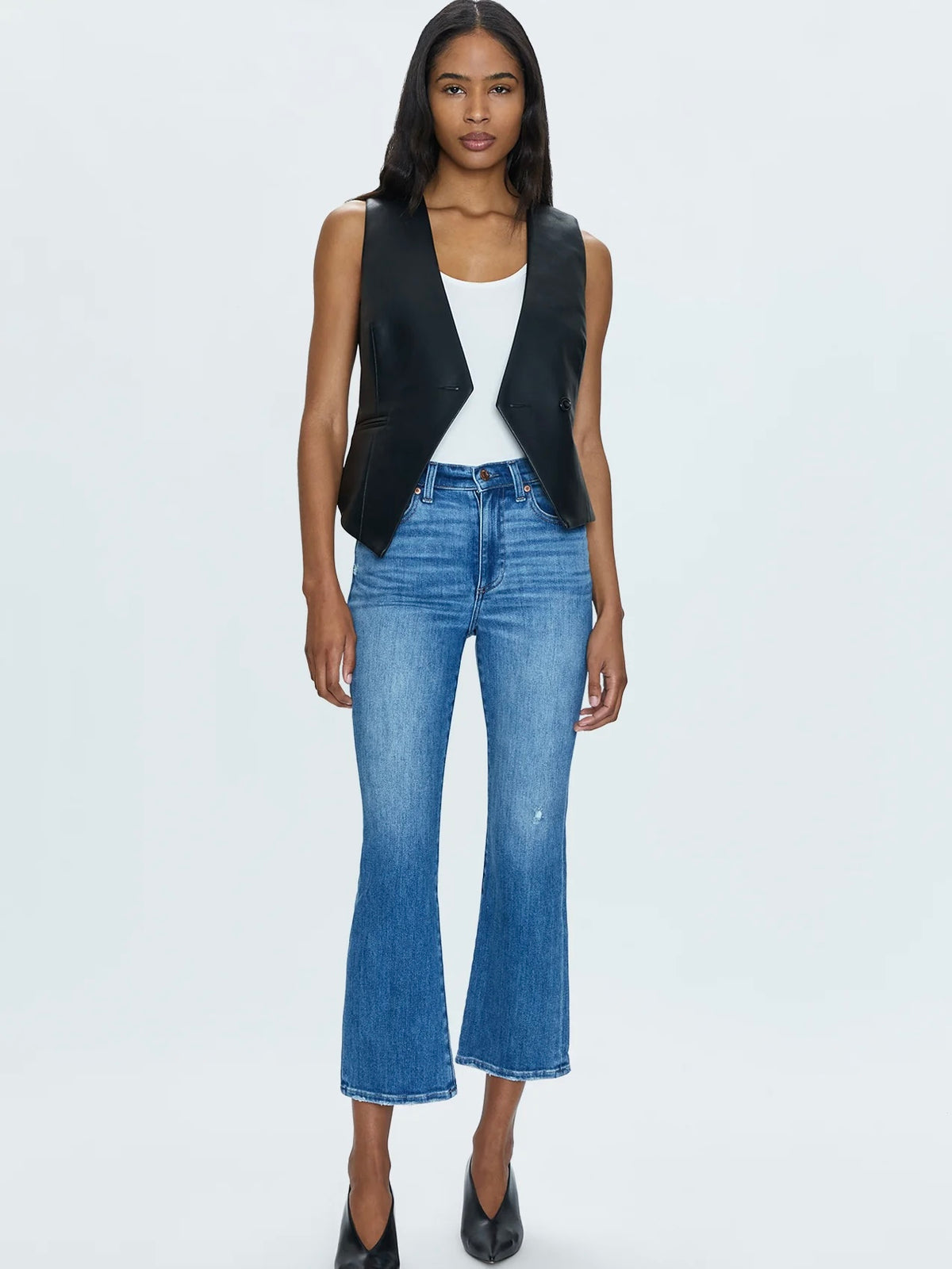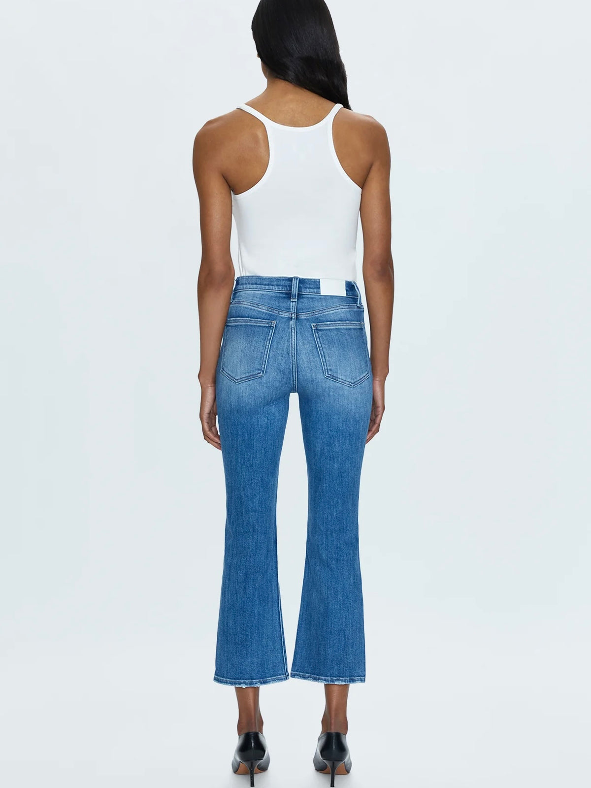 Our best selling bootcut silhouette with a high rise waist and cropped ankle hem with a clean finish. Crafted from our best selling comfort-stretch denim. Fling Vintage is a classic medium blue denim wash with lived-in fading, vibrant whiskering, and barely-there hints of distressing.