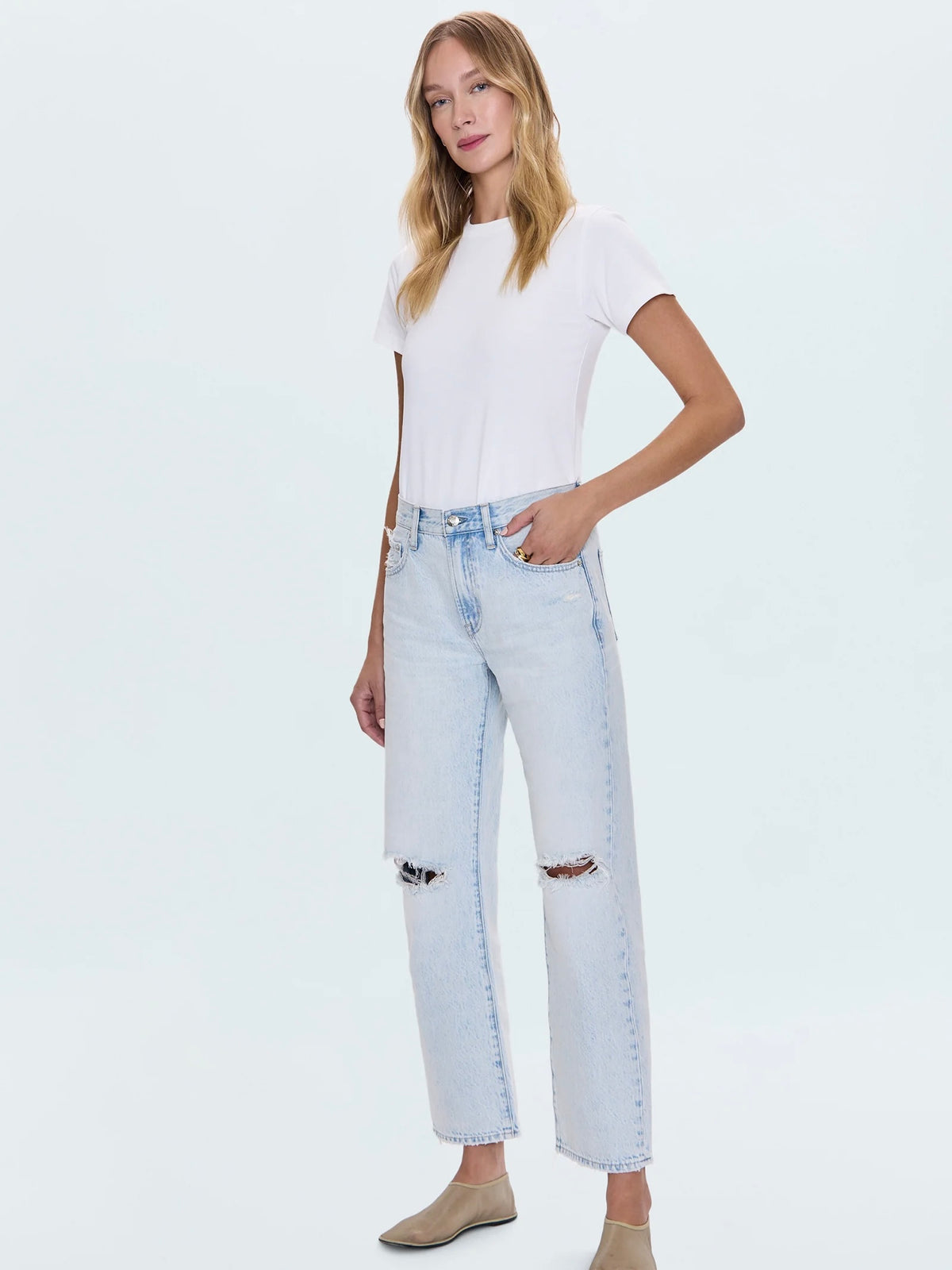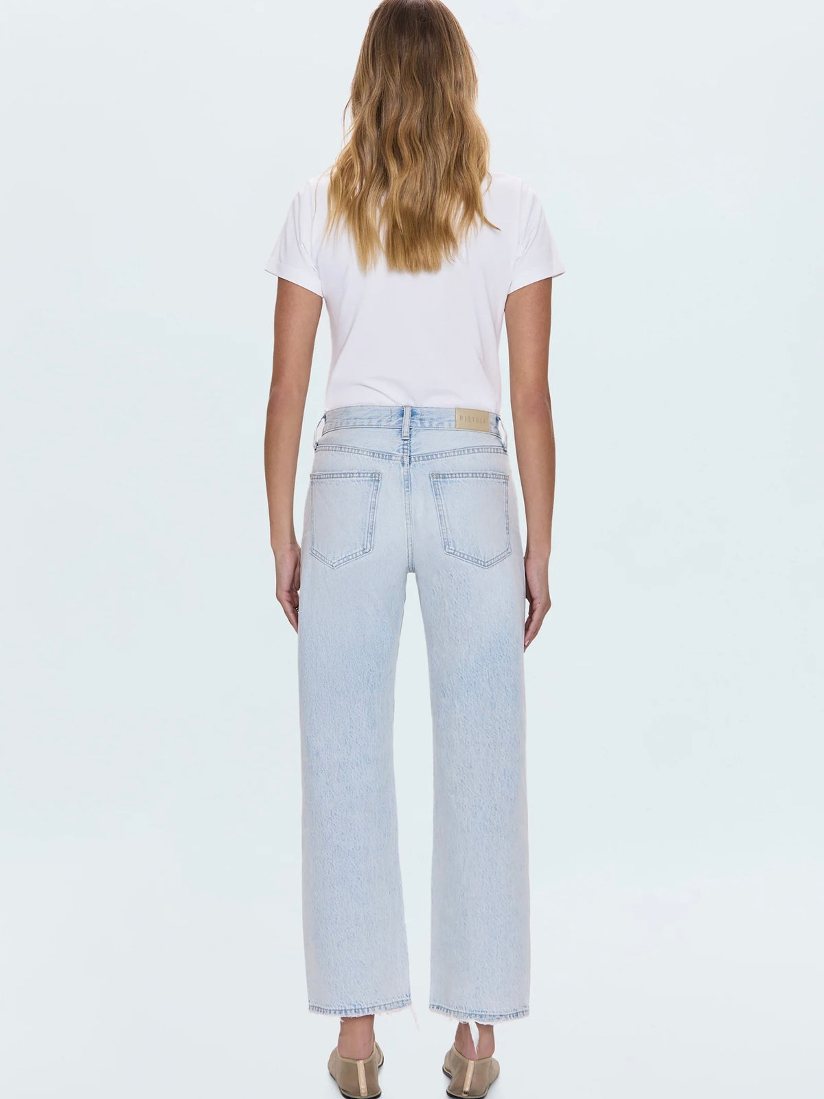 Meet your new favorite jeans. Designed with a flattering mid-rise and a unique bowed leg silhouette, these jeans offer a modern twist on a classic style. The straight leg is subtly bowed at the knees, creating a gently arched shape that's both comfortable and chic. The cropped ankle length and clean hem make them perfect for showcasing your favorite shoes.