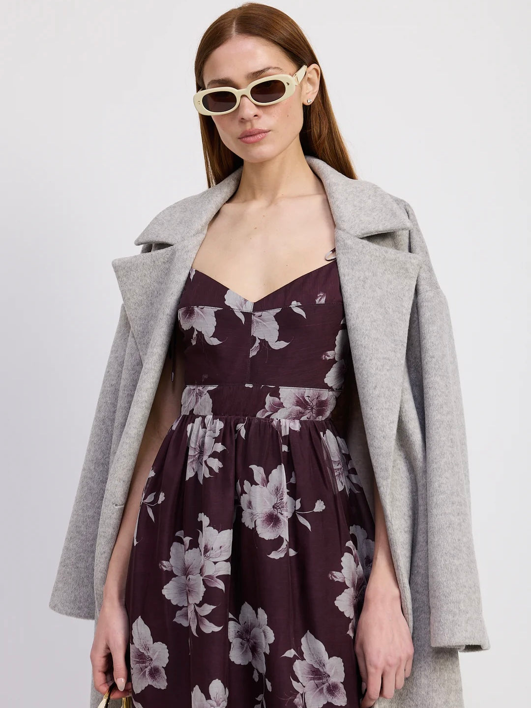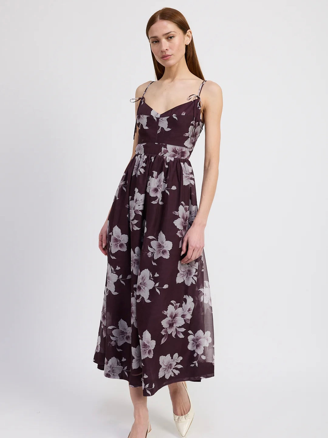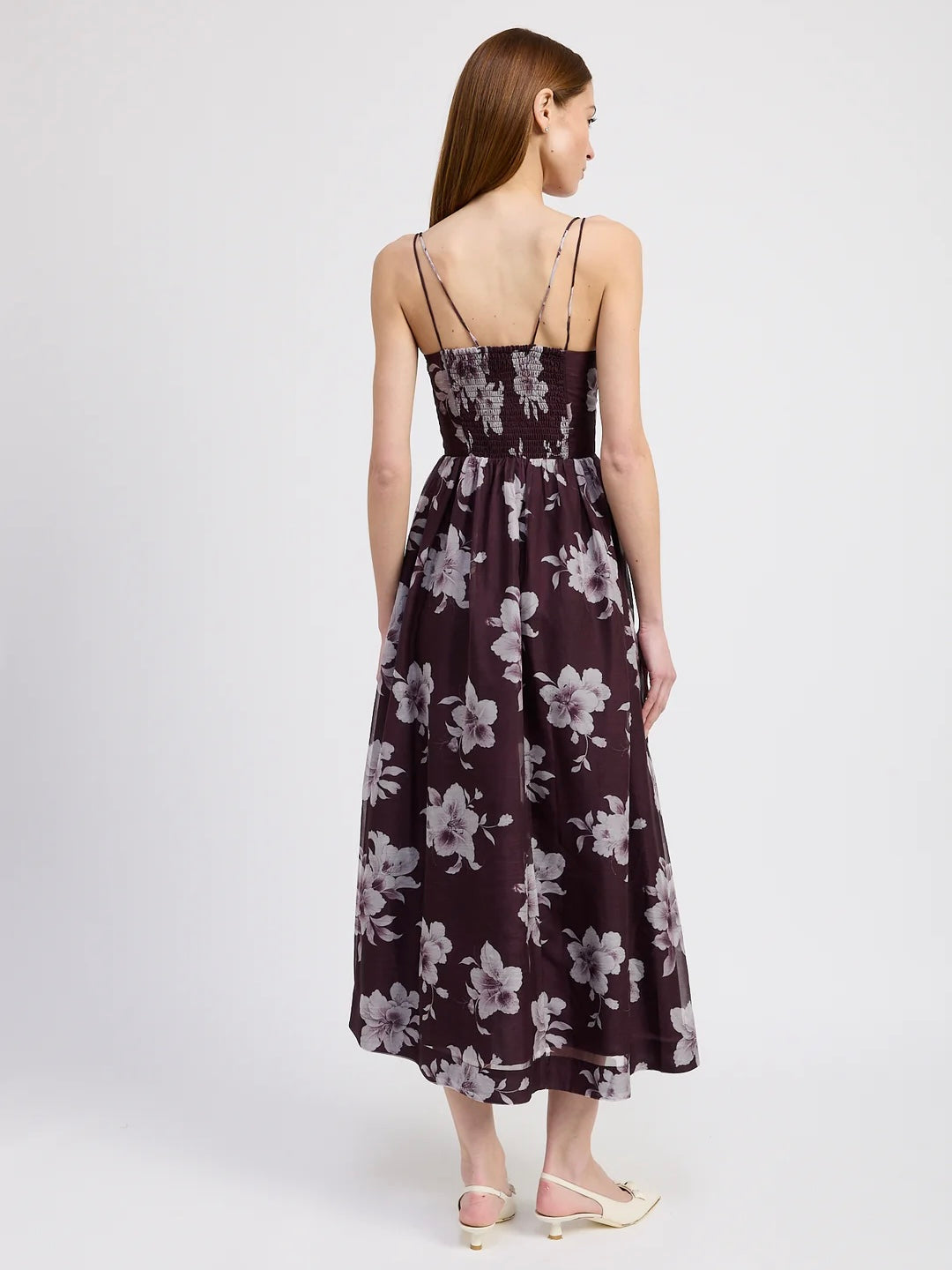 - Tie Detail Paneled Fitted Bodice Midi Dress With Smocked Back