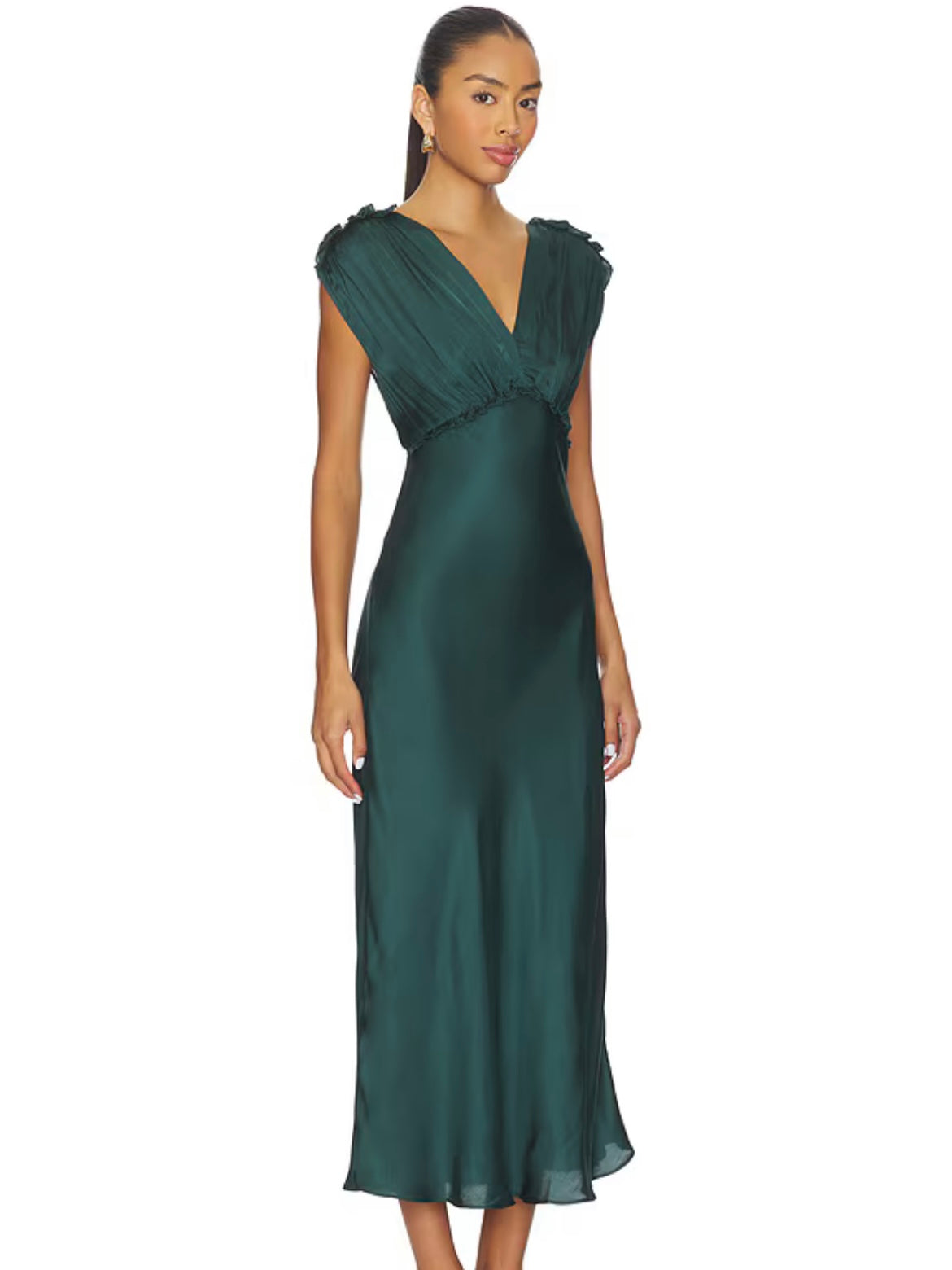 Gorgeous teal green dress, perfect for a Fall/Winter wedding or event.