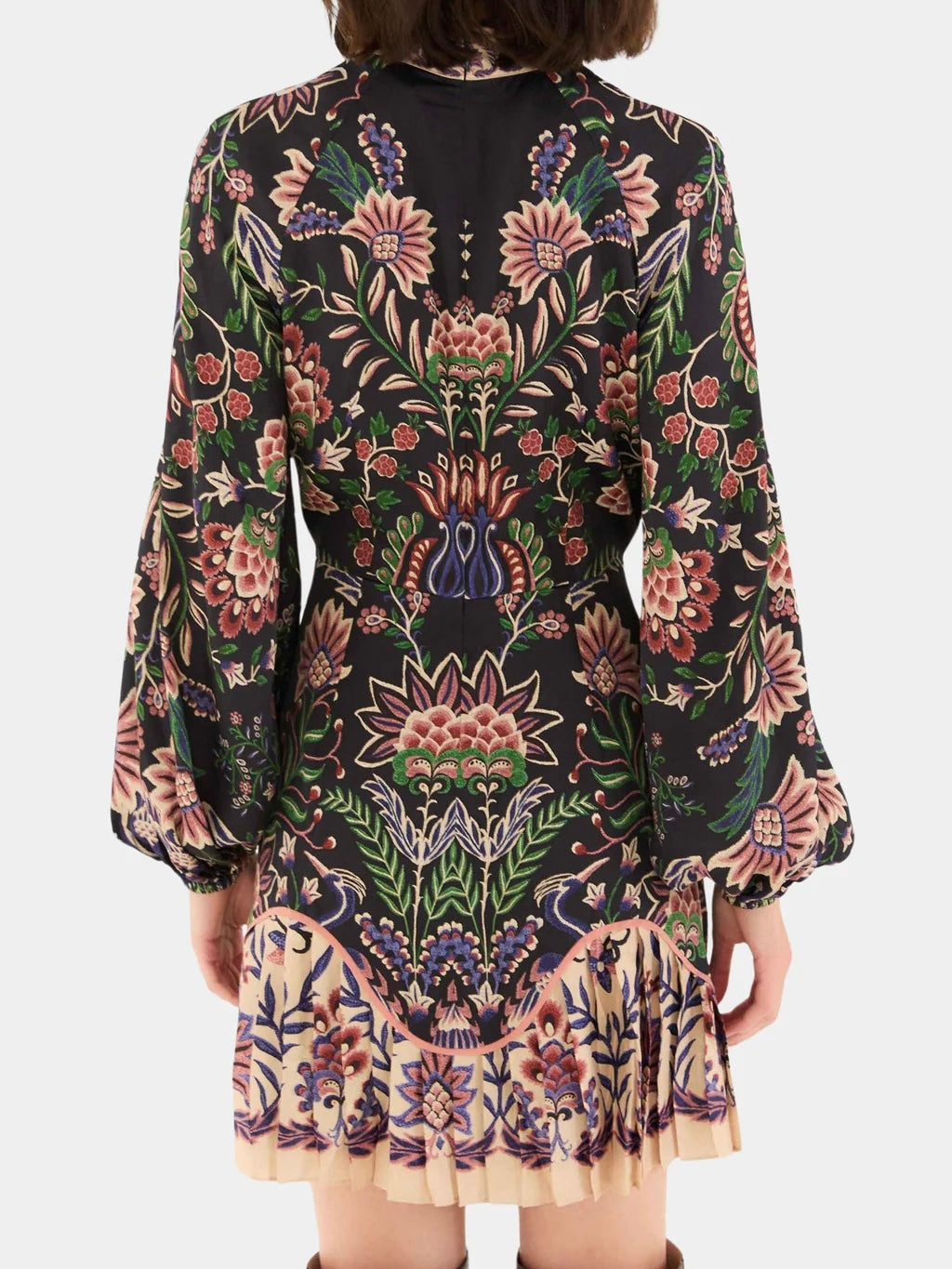 Captivate all eyes in this Marvelous Garden Black Mini Dress. With its long sleeves, mock neck, and pleated hem, this dress exudes effortless sophistication. Crafted by Farm Rio, this mini dress is a true wardrobe essential.