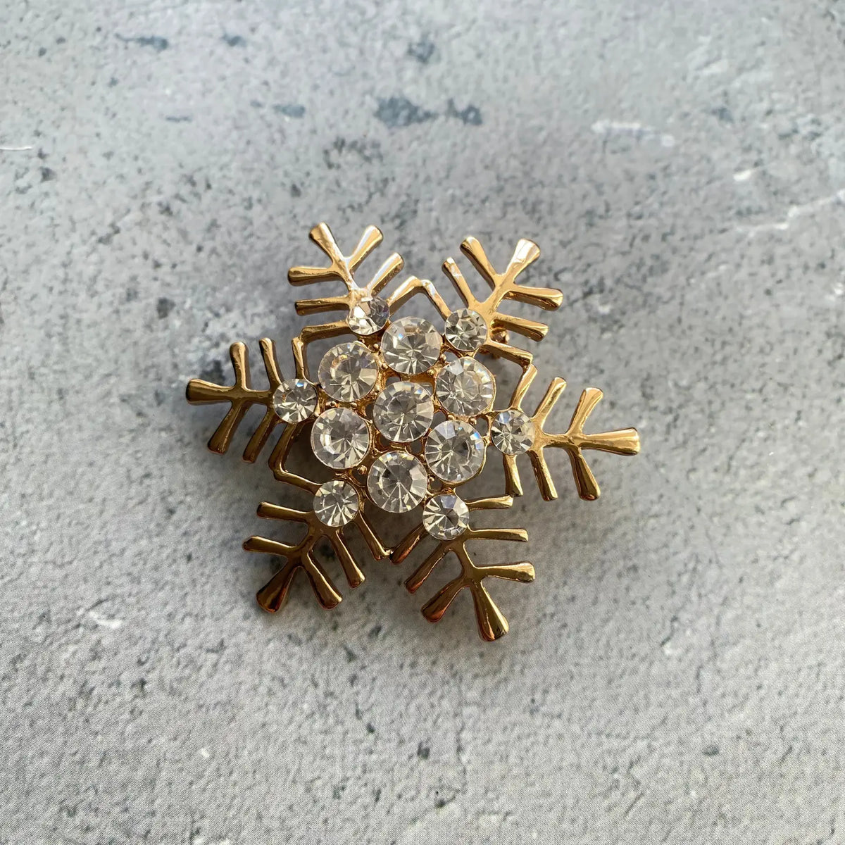 Elevate your holiday look with this elegant brooch, available in classic gold and silver tones. Featuring dazzling crystal accents and a timeless snowflake design, these brooches are perfect for accessorizing scarves, sweaters or even slippers!