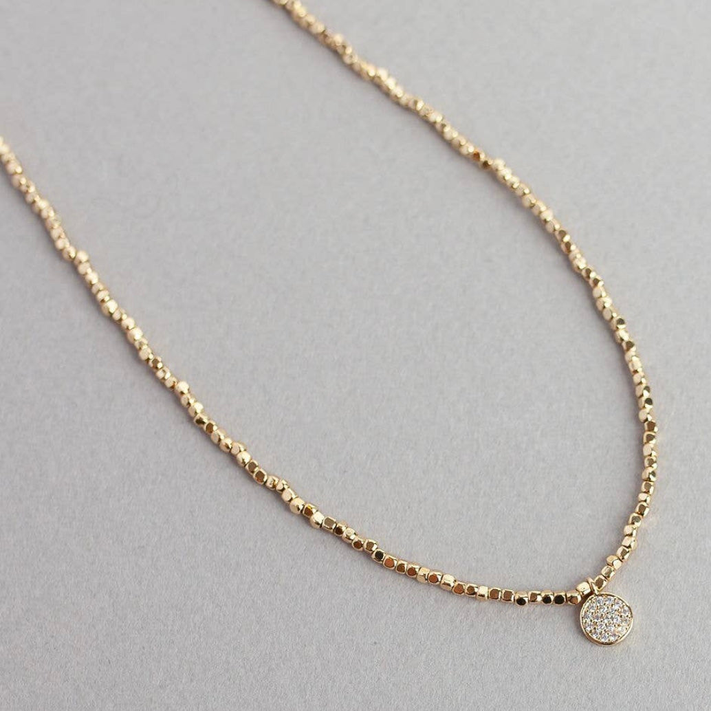 13-16in full strand of beads with diamond cluster encased in pendant.