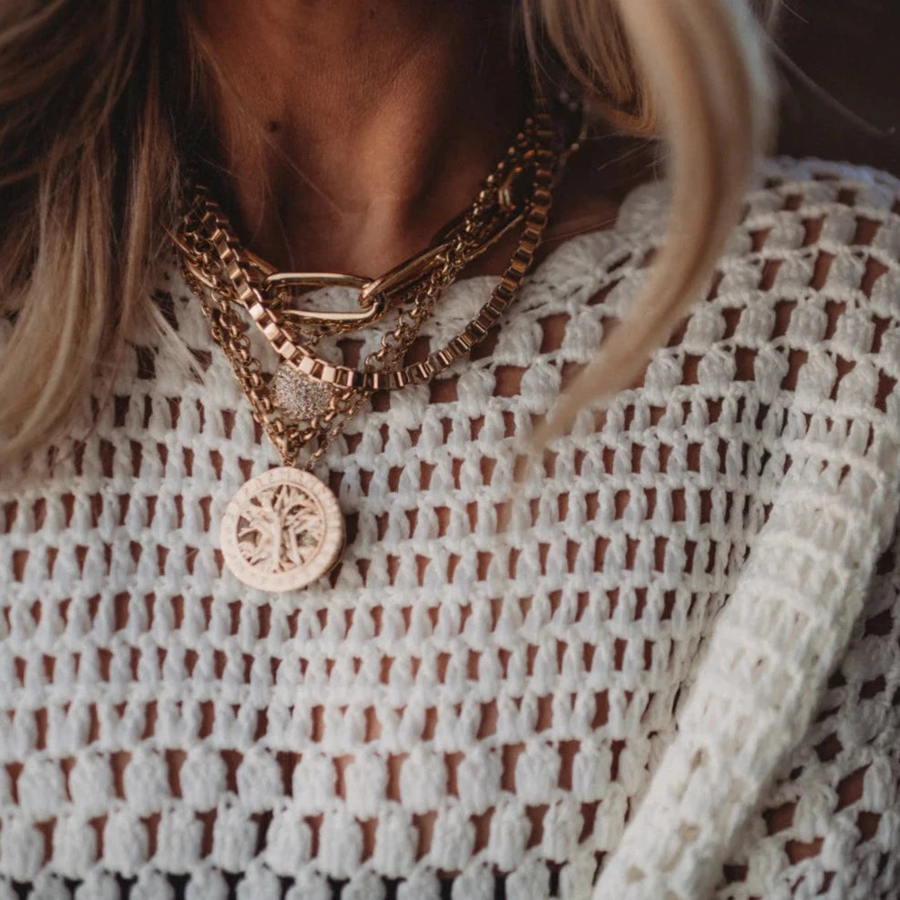 This larger than life paperclip chain is the most beautiful on its own. It will steal the show and spotlight in any room. Truly iconic! Each link is approximately 1” in length.