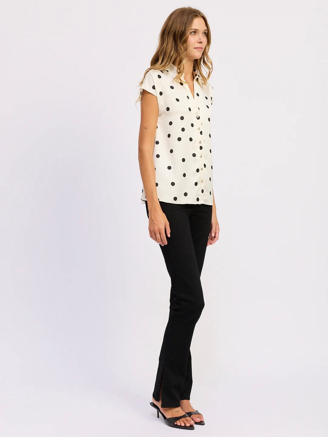 - Sleeveless Dolman Button Front Collared Shirt