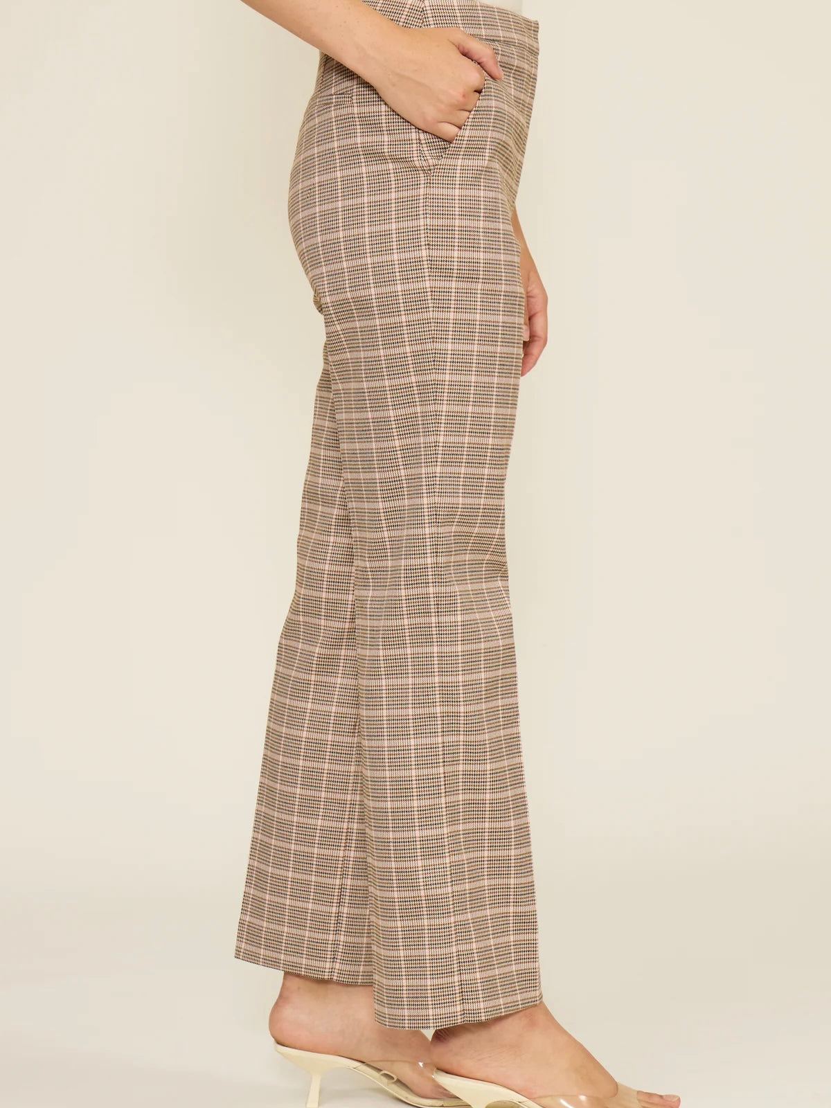 A slightly cropped pant in plaid to take you into spring in style. Pair with a pink or neutral sweater or try our Ella blazer for a unique suit look!