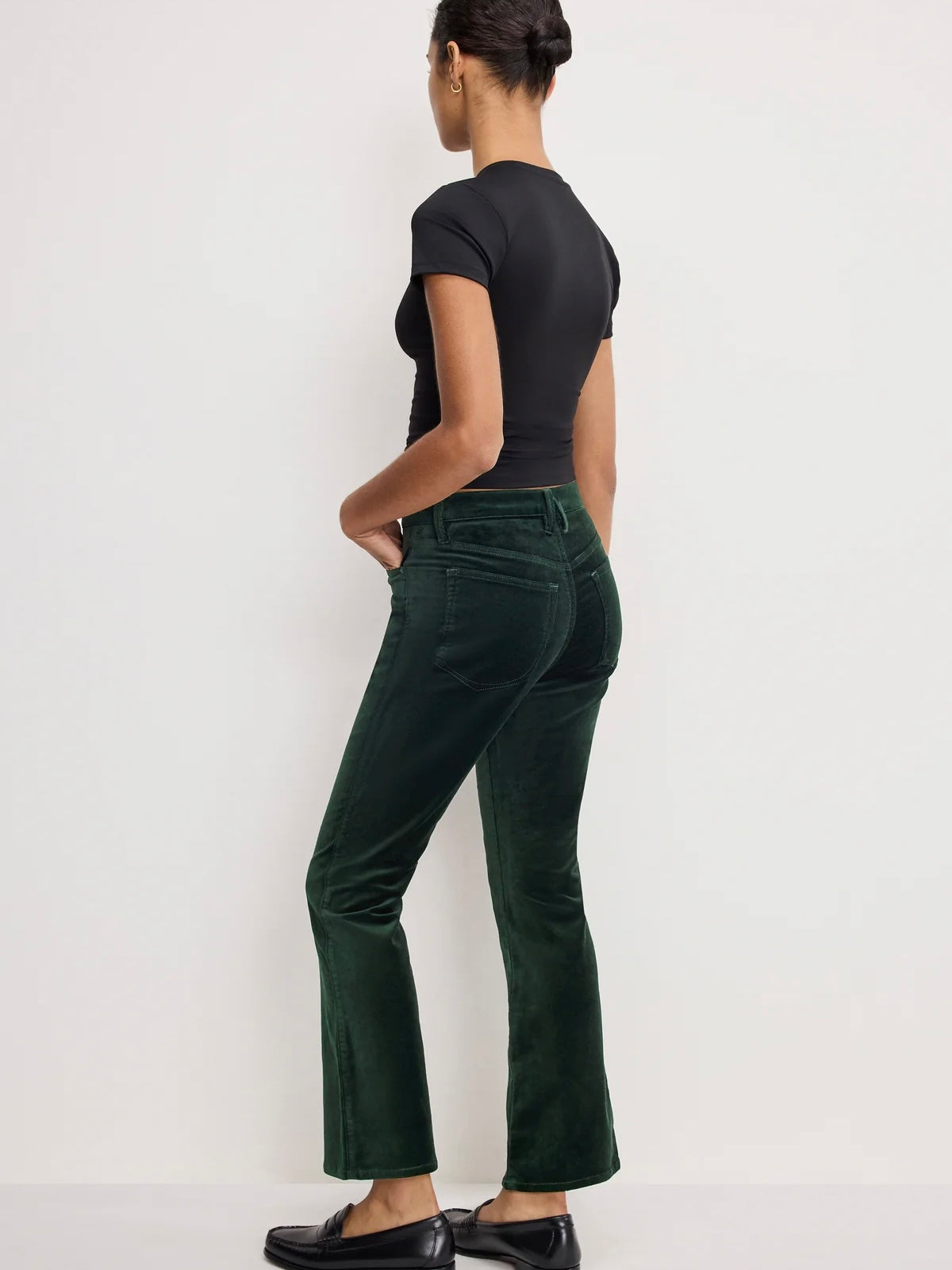 Velvet Good High Rise Kick Flare Pants offer comfort with a touch of edge. The velvet feels soft and luxe, while the high rise gives you a flattering fit. The kick flare adds just enough movement to keep things fresh and cool. Easy to wear, yet still making an impact.