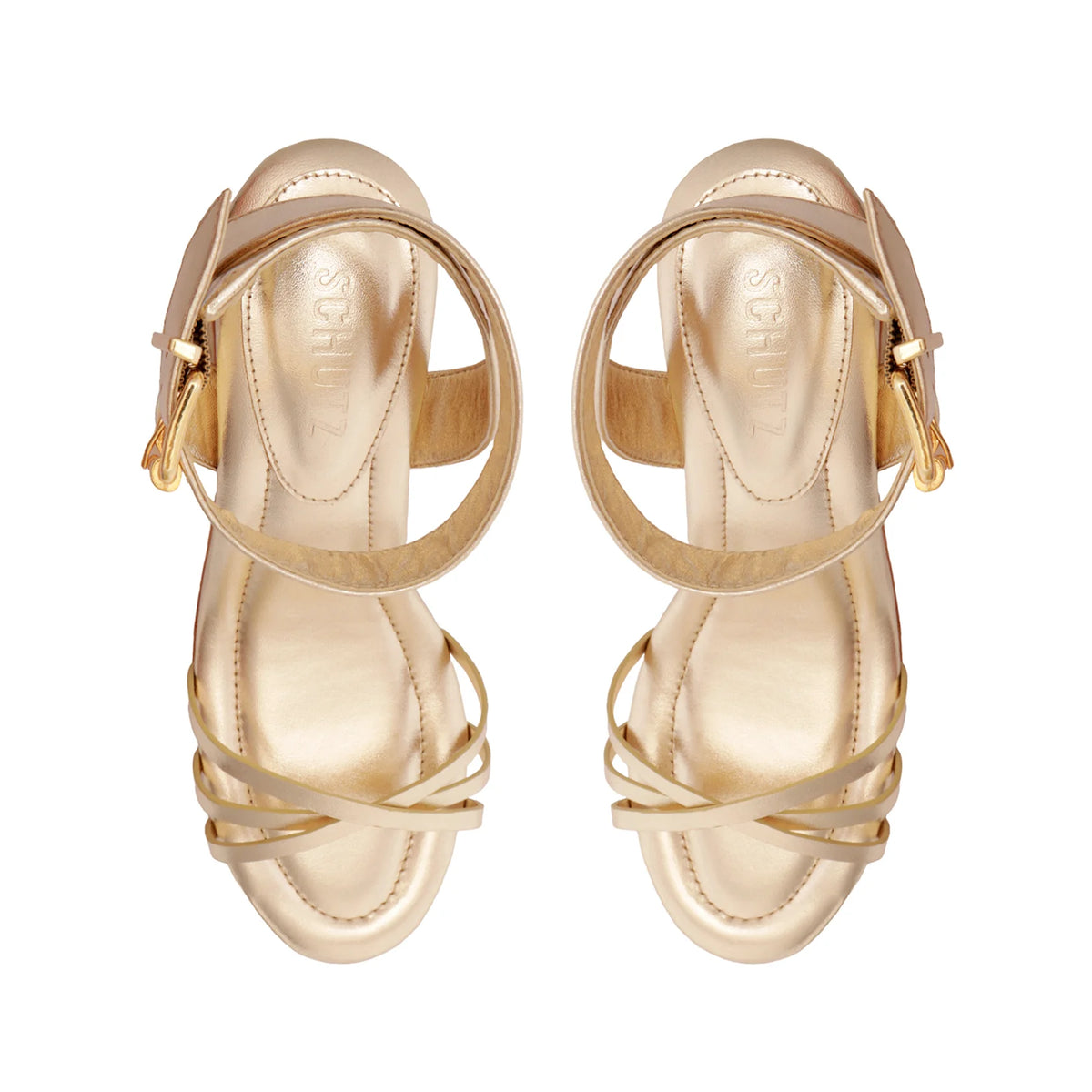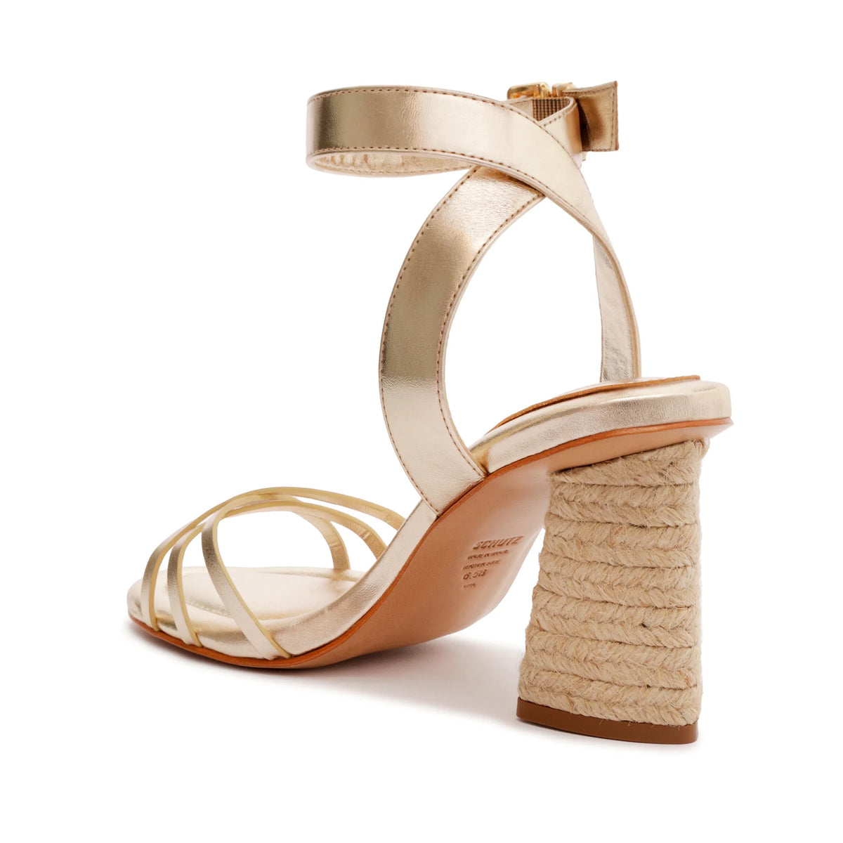 Step into sophistication with the Alexandra High Block Sandal.  Its gold and chic straps add a touch of elegance, while the block heel covered in rope exudes charm. Elevate your style with this tasteful sandal.
