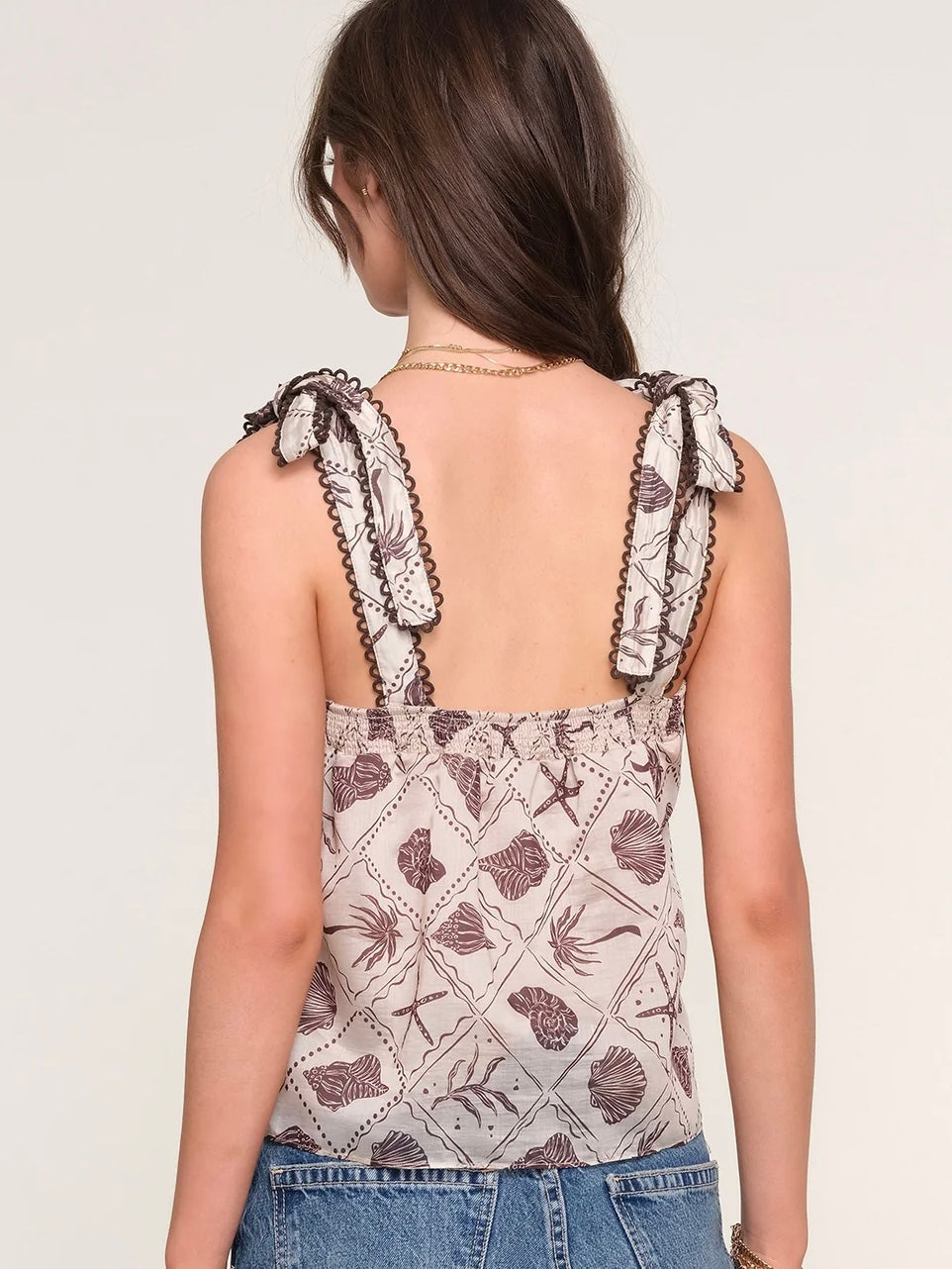 The Almeria Top is a pretty, lightweight top, adorned with our favorite summer print. It features a relaxed fit, scalloped trim and tie straps.