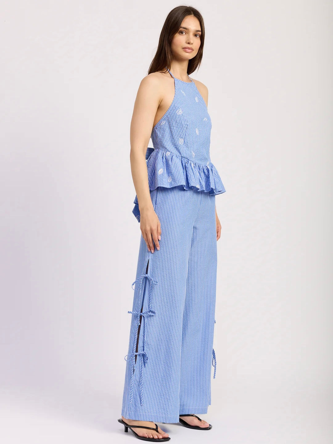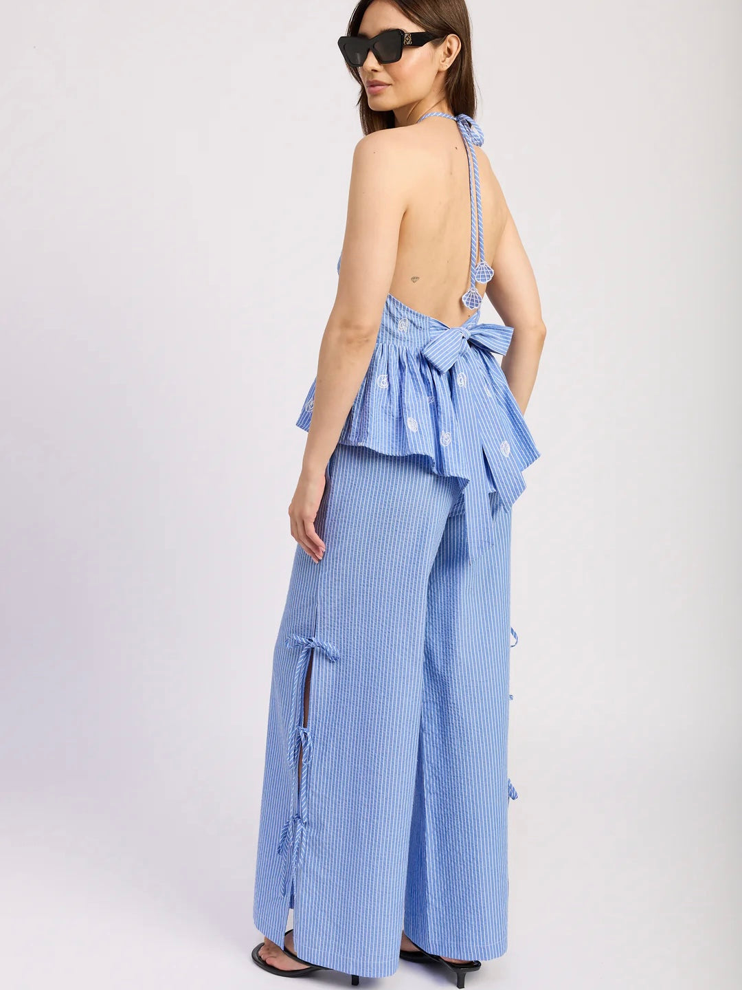 - Elastic Waist Pull On Pants With Slit And Tie Detail