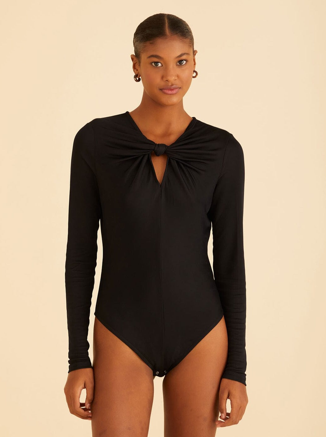 You can never go wrong with the classics. That's why the FARM Rio Black Long Sleeve Bodysuit is here to be your go-to staple with its timeless solid style. The skin-tight fit hugs you in all the right places, creating an effortless silhouette to make you comfy through AM-PM situations. And the long sleeves keep the breeze away as you pair your new fave with cool pants, flowy skirts, or whatever else matches your mood this cold-ish season.