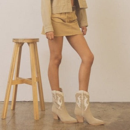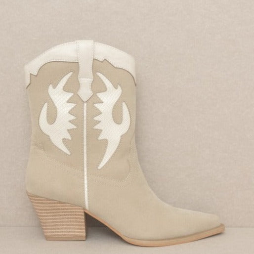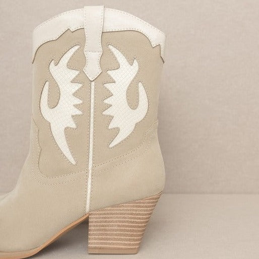 A cowboy boot with attitude, this multi-layered western boot looks ready for the rodeo and makes a statement at any festival. We love the neutral colorway and lower height for skirts and dresses!
