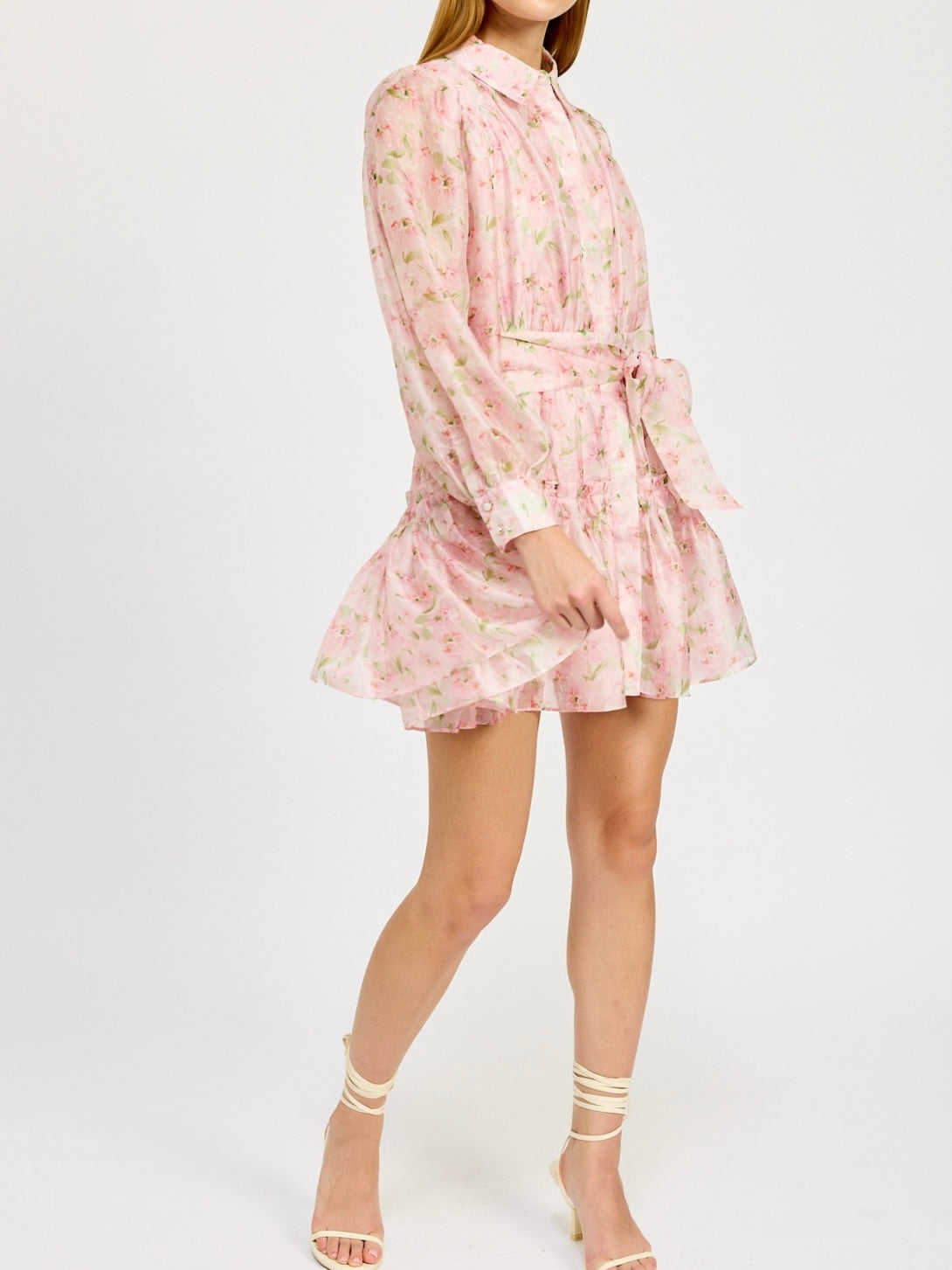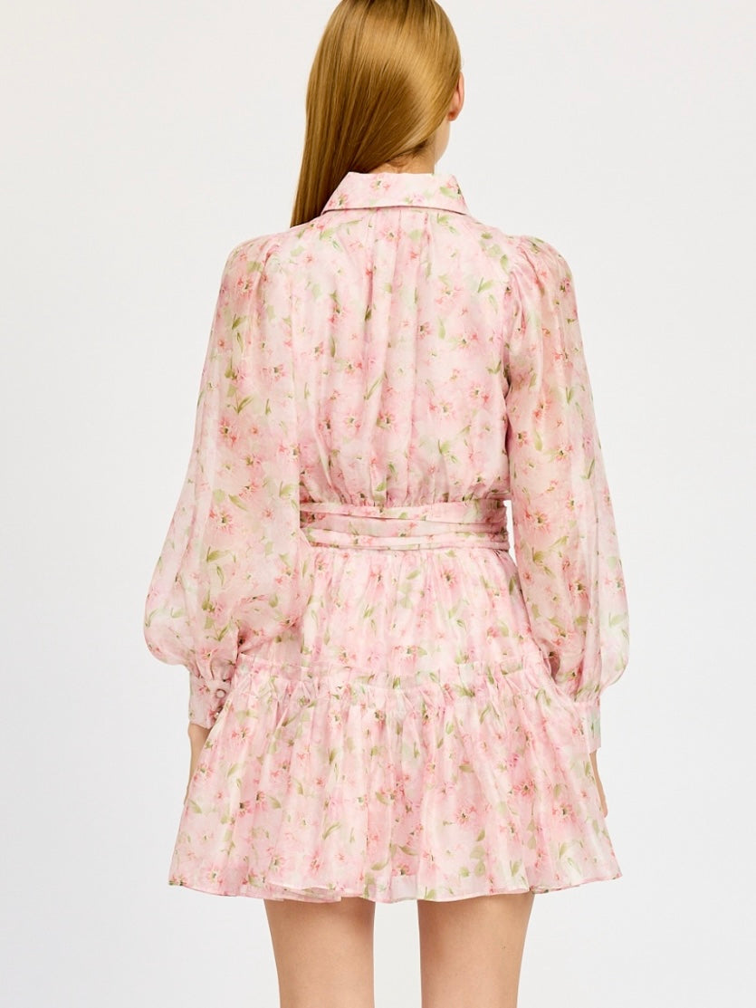 This gorgeous dress features long sleeves for a chic and sophisticated look. Elevate your wardrobe with this versatile mini dress! We love it paired with a flat or heel and a simple pearl earring for a classic, beautiful spring look.