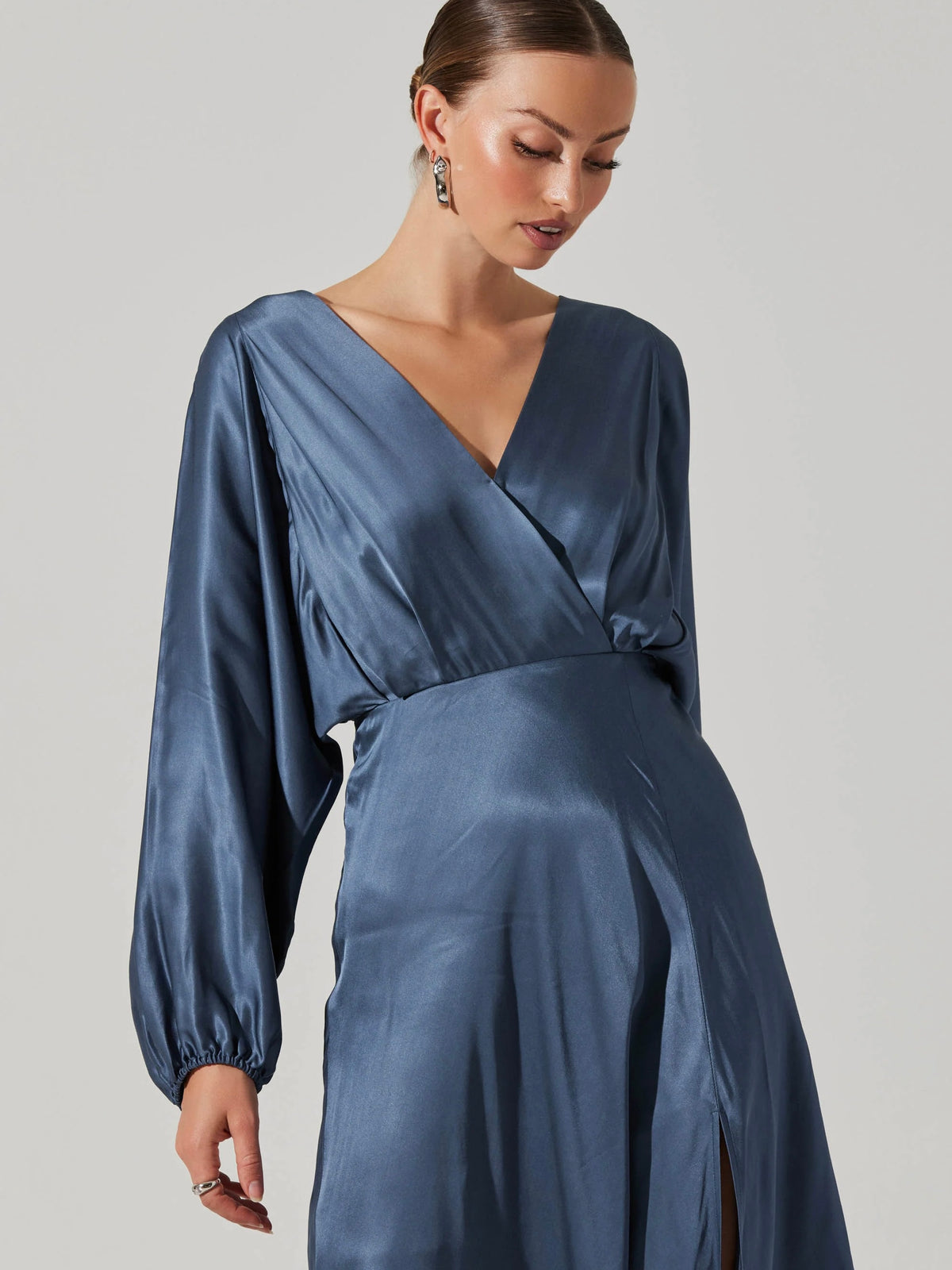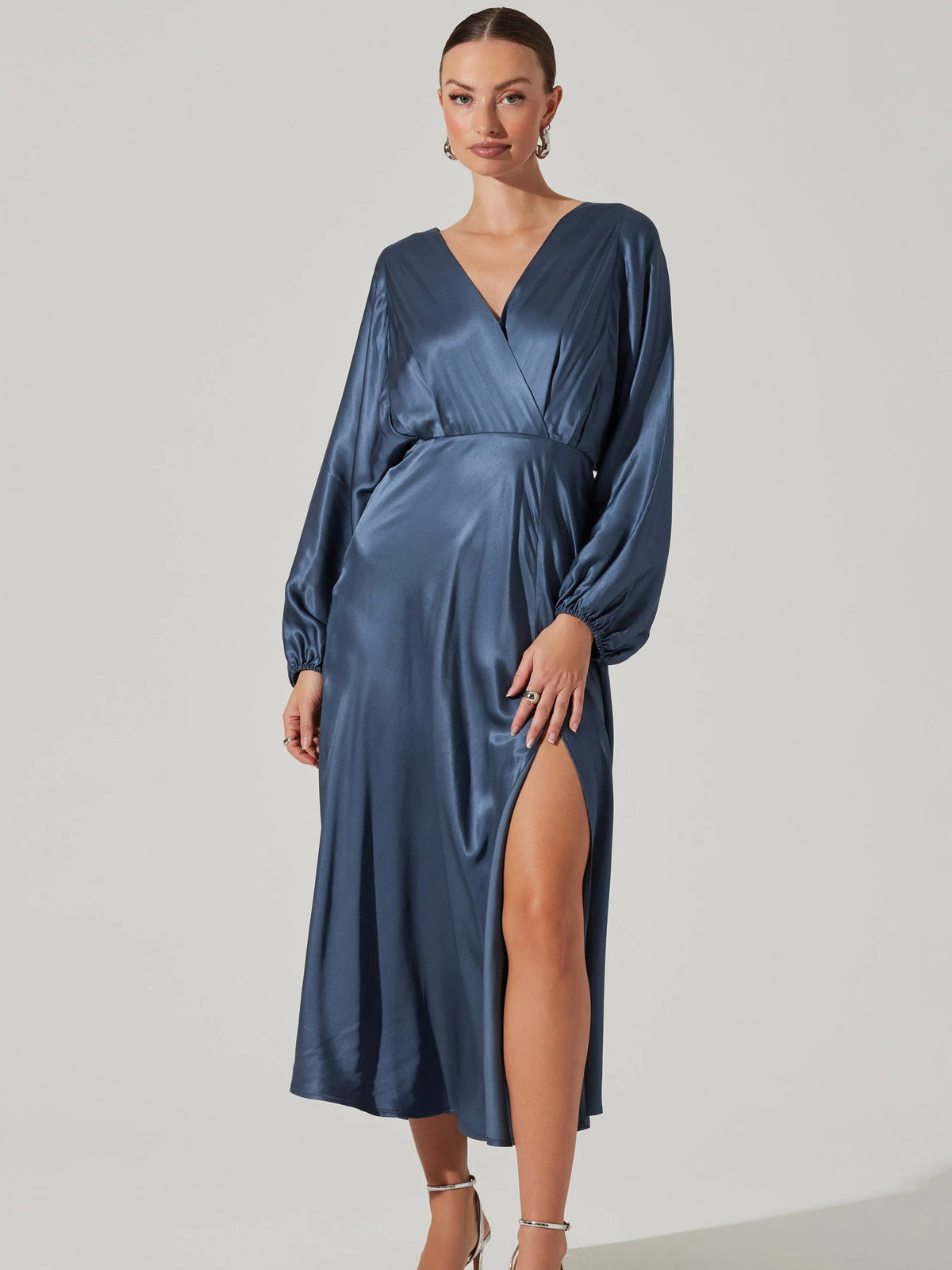 The most gorgeous slate blue compliments this flattering dress style perfect for your next event! Perfect on all body shapes, this dress can easily be dressed up or down for the perfect look.