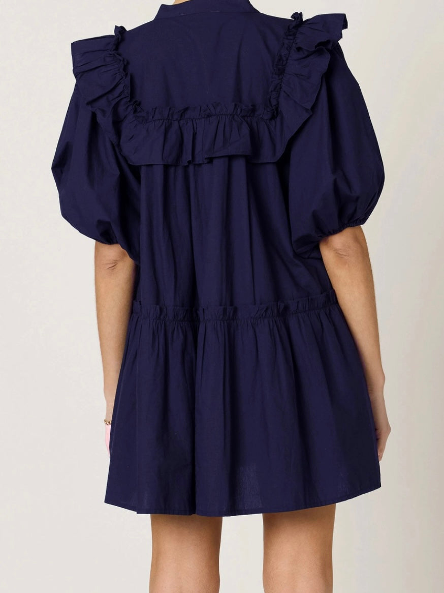 In organic cotton, the best-selling Tatiana Mini Dress features puff sleeves and a ruffle detail at the yoke. Pockets make this dress the perfect choice for a combination of style and convenience.