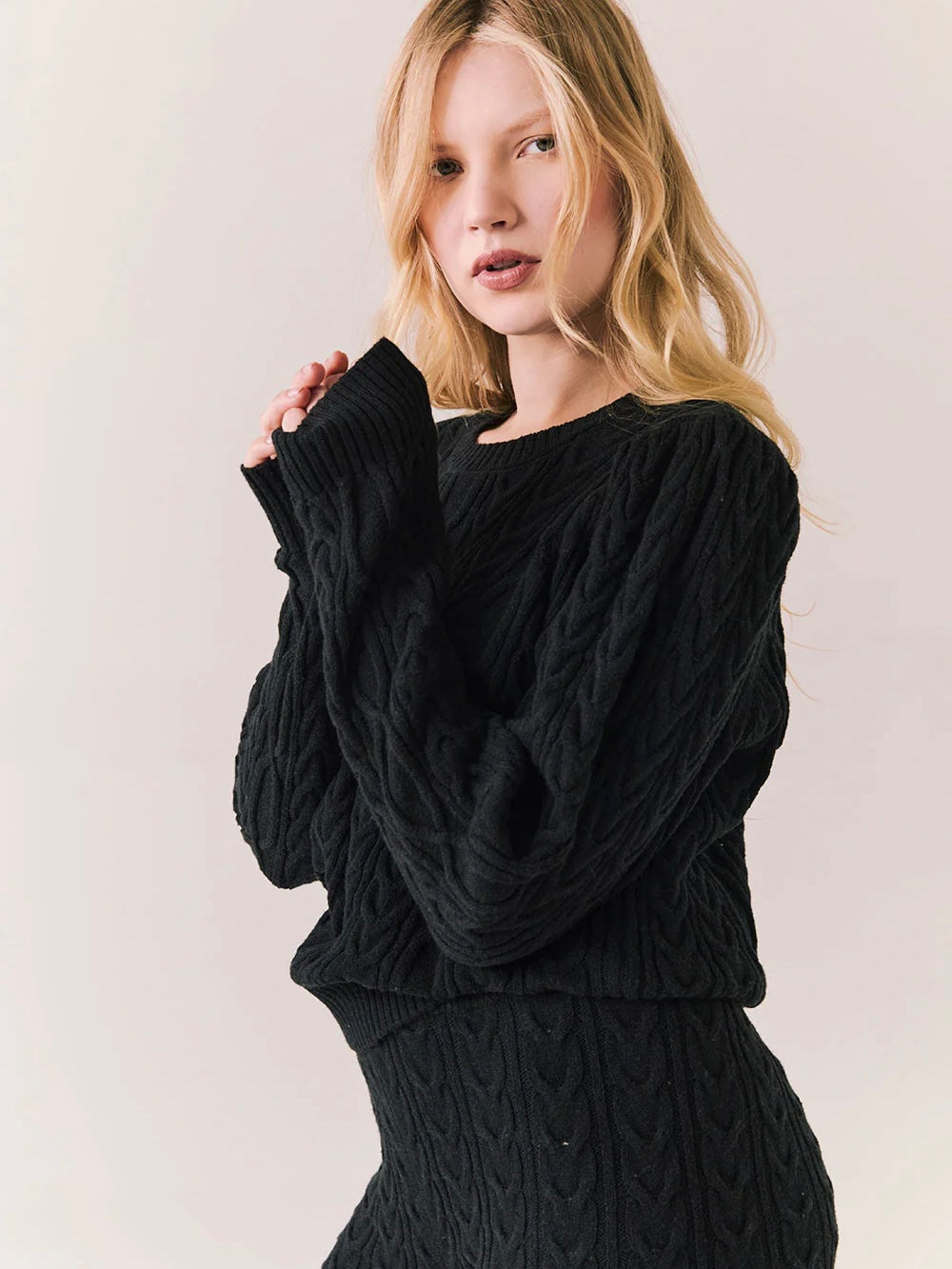 Where cozy meets cute, the Annira True Black Sweater features an oversized chunky knit with a roomy body and long sleeves.