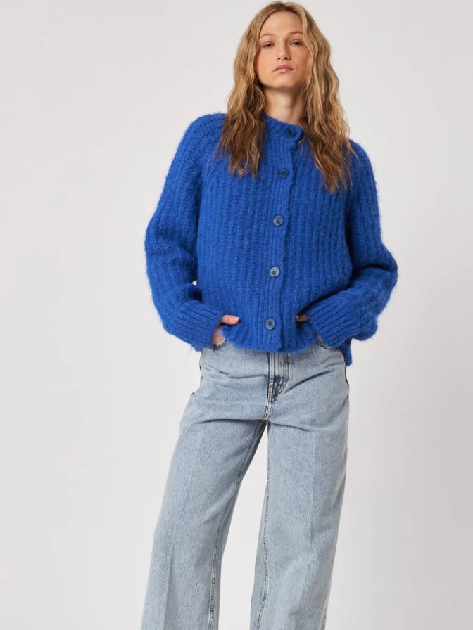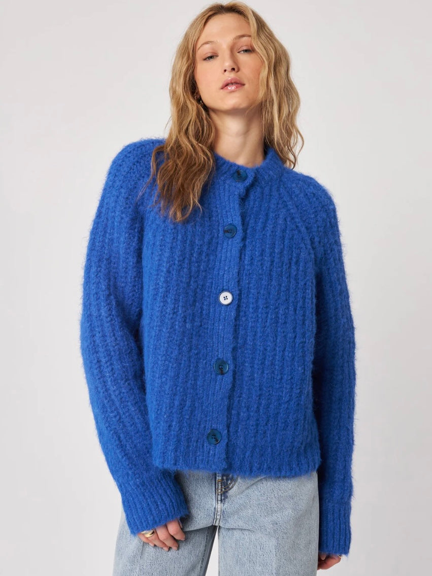 The BENNY cardigan brings vibrant energy to your fall wardrobe with its electric cobalt blue hue. This chunky knit, button-front design offers cozy warmth and bold style, perfect for layering on crisp autumn days while making a standout statement.