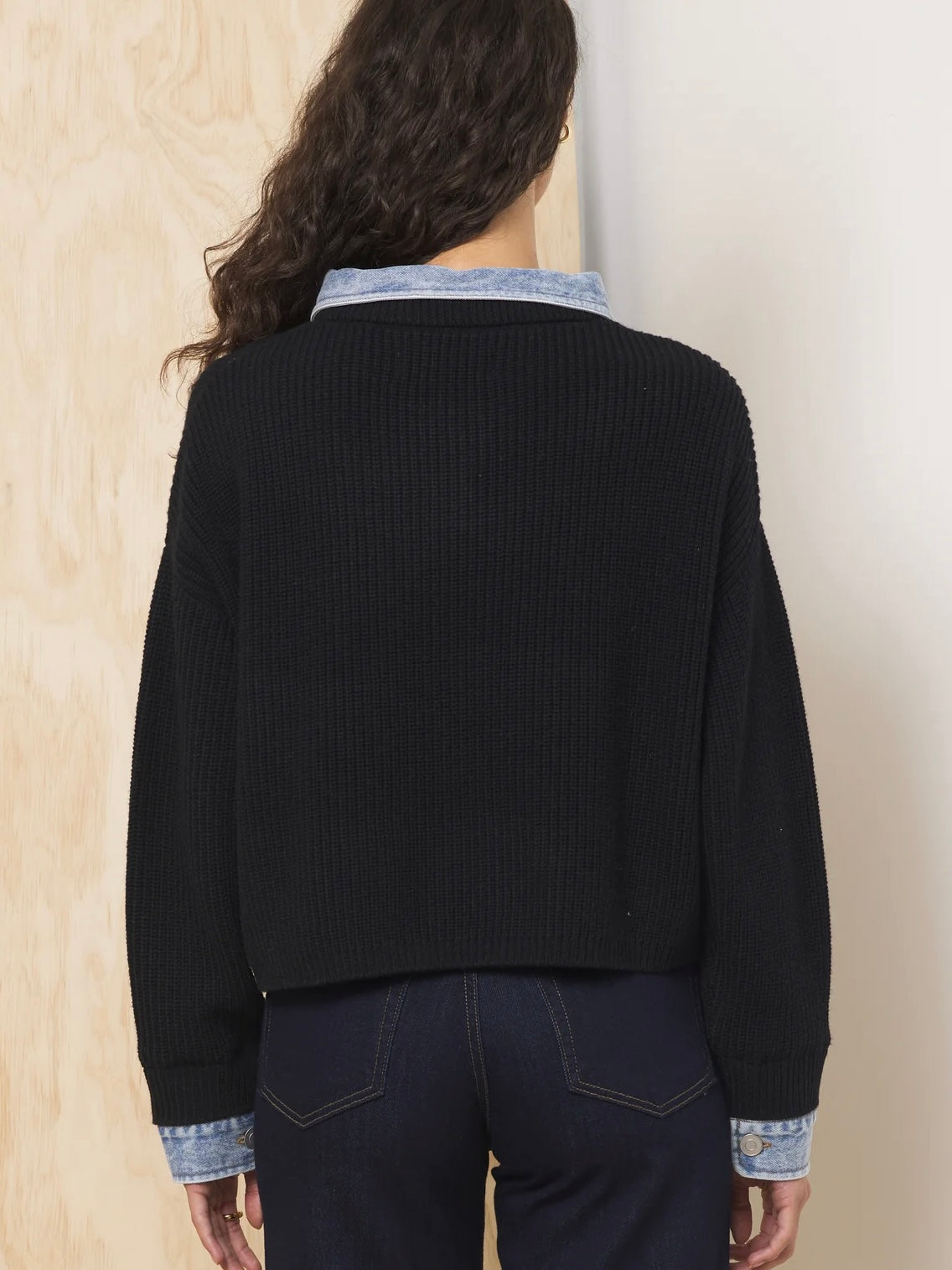 The Black & Denim Cropped Sweater combines modern style with thoughtful design details for a versatile wardrobe staple. Featuring a cropped denim collar and matching denim cuffs, this piece adds a subtle yet distinctive edge to your outfit. The cropped fit creates a flattering silhouette, perfect for layering over high-waisted bottoms or pairing with your favorite jeans.
