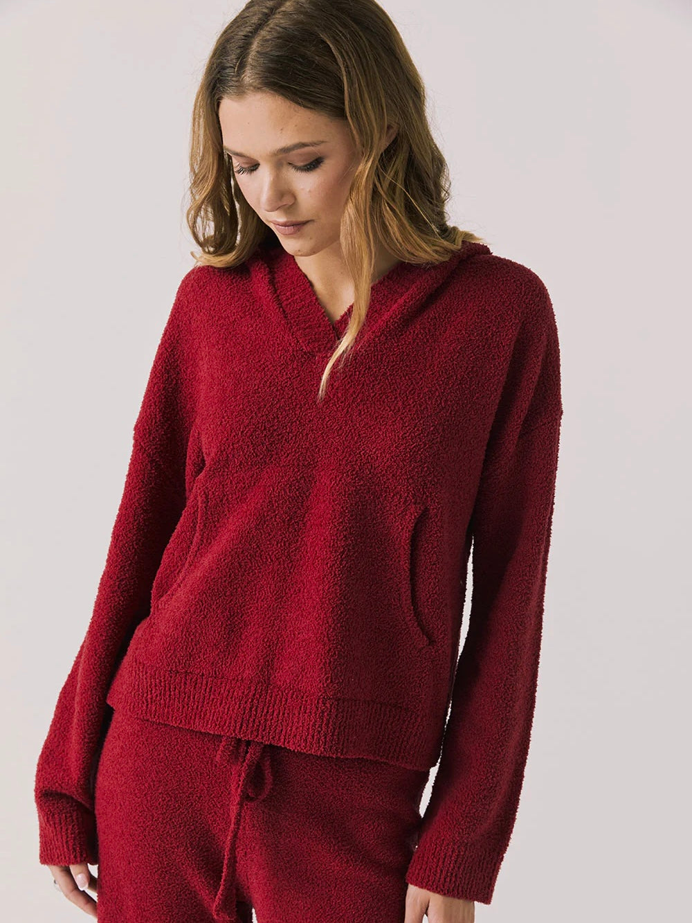 Its generous front pocket provides a subtle touch of practicality, ideal for relaxation or casual occasions.