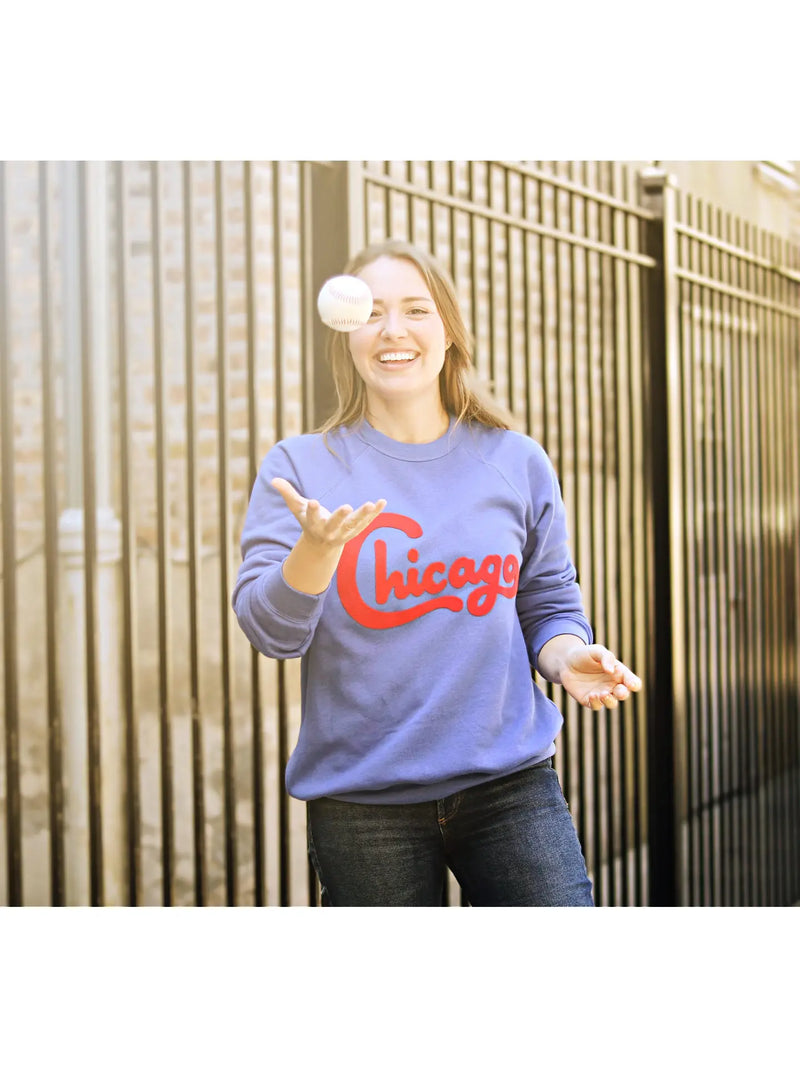 Chicago Blue Felt Applique Crewneck
