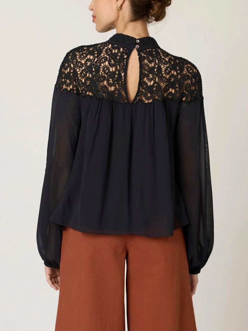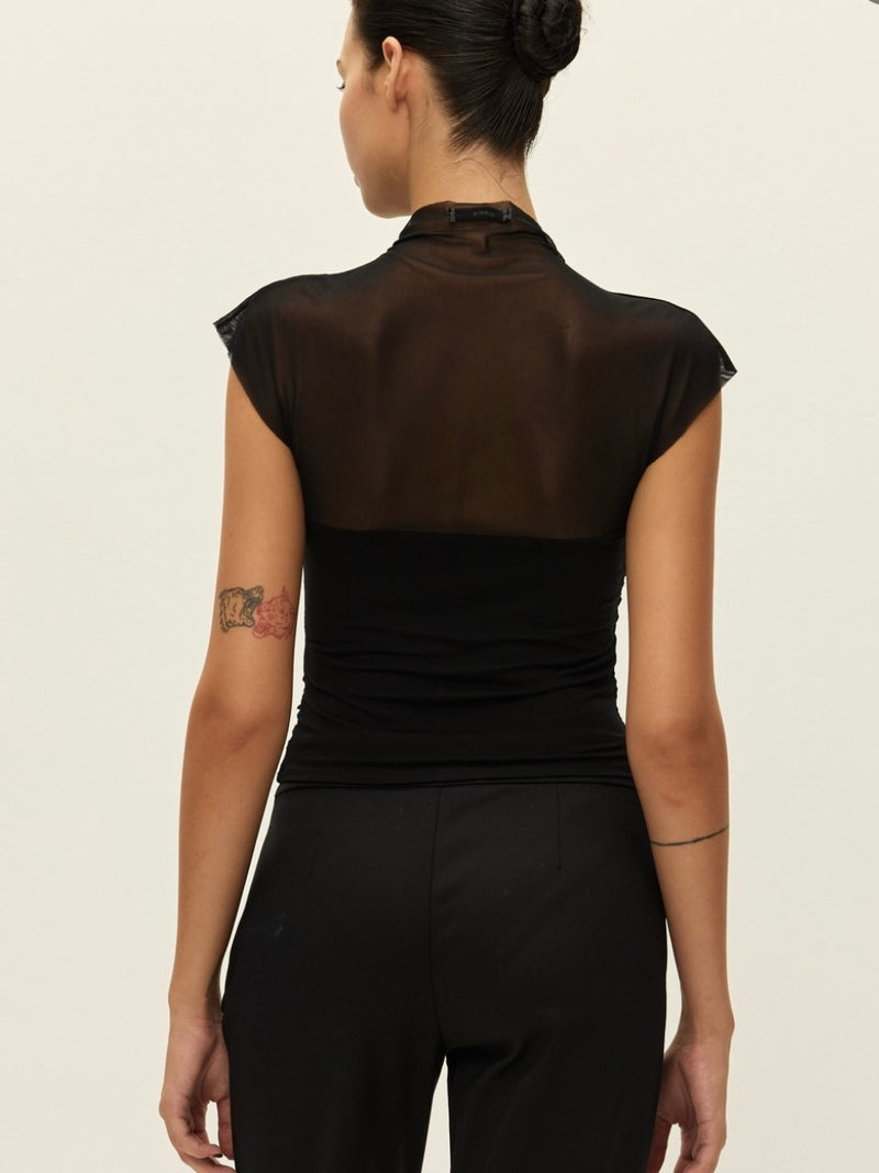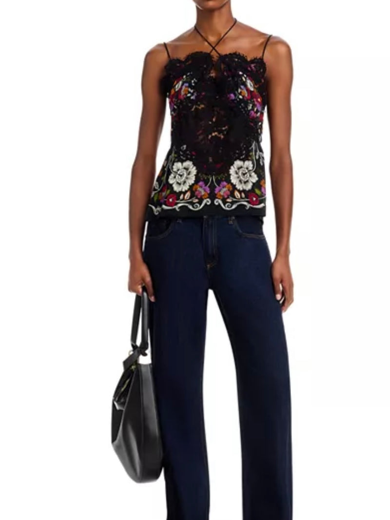 Rococo Flowers Black Lace Sleeveless Top