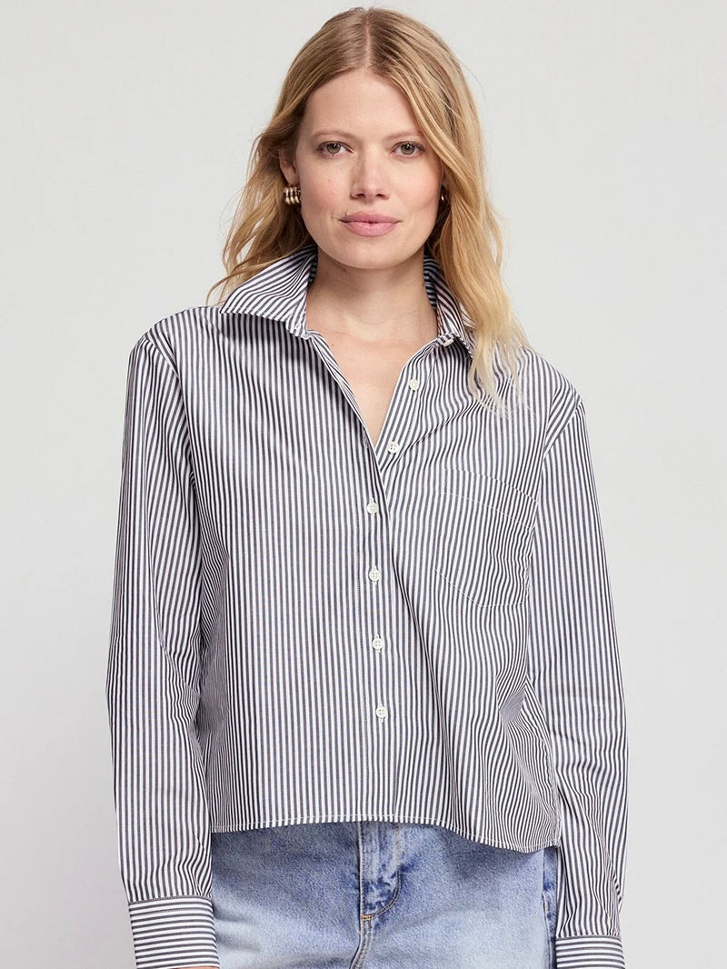Danica Oversized Stripe Button Up Shirt W/ Tie Neck