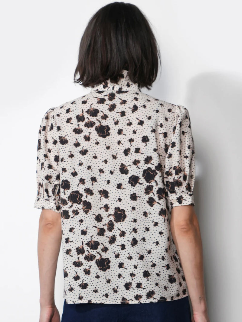 Delilah Scarf Neck Short Puff Sleeve Blouse